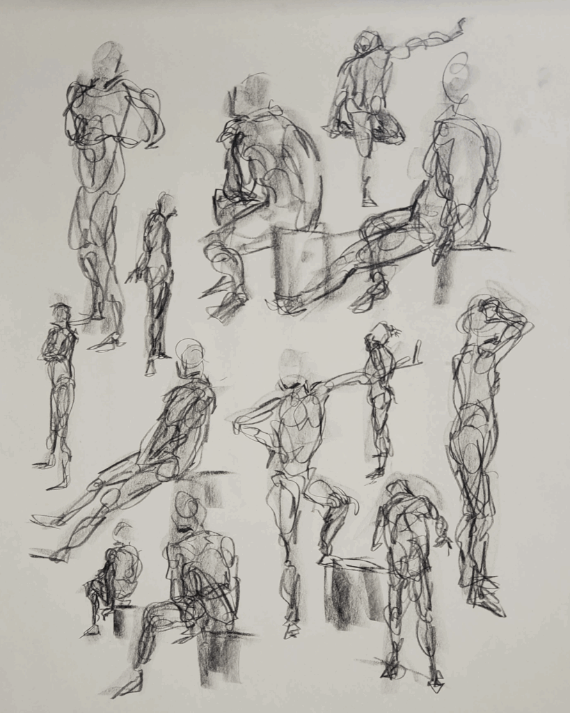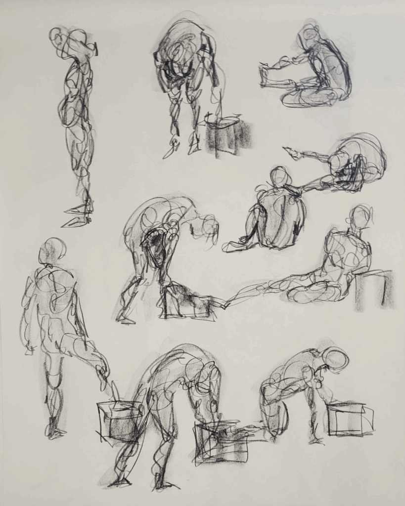 Gestures in conte and charcoal studies on paper.